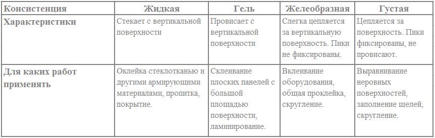 Виды консистенции эпоксидной смолы